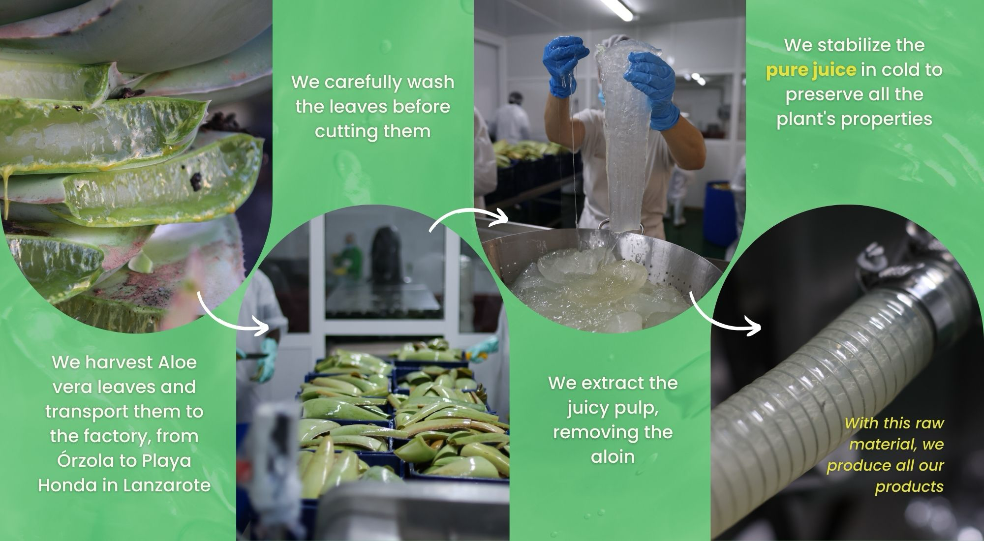 We are company with over 20 years of experience dedicated to the production of cosmetic and food products. Our products are based on Aloe vera juice and are entirely manufactured in Lanzarote, Canary Islands. We use cold-stabilized Aloe vera juice as the main ingredient, ensuring the exceptional quality of each of our products.